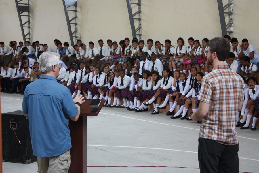 The next day, Sunday, David preached in the same church, and we spent the rest of the day working on our presentation. On Monday morning, we presented for about 90 minutes to a group of 200 high school students on the topic of dinosaurs and the flood, ending with a gospel presentation. The talk produced many questions and seemingly a lot of interest. That afternoon we returned to Quito.