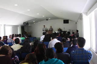 Taught "Genesis vs. Evolution" to about 40 seminary students. The students loved every minute even though we didn't have time to get into much of the scientific evidence. The class was split into two 4 hour sessions given Thursday and Friday evening. We were slowed because the teaching required interpreting from English to Spanish, and so we were unable to cover the last two sections on Cosmology and Geology. Sunday evening we invited the entire seminary class to the church where we completed the last two hours (picture below). The seminary did video the class, but we forgot to ask someone to take pictures for us so we have no photographs.